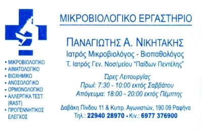 Αιματολογικές - Βιοχημικές - Ορμονολογικές - Ανοσολογικές εξετάσεις. Βιοχημικό εργαστήριο, αιμοληψίες κατ' οίκον.